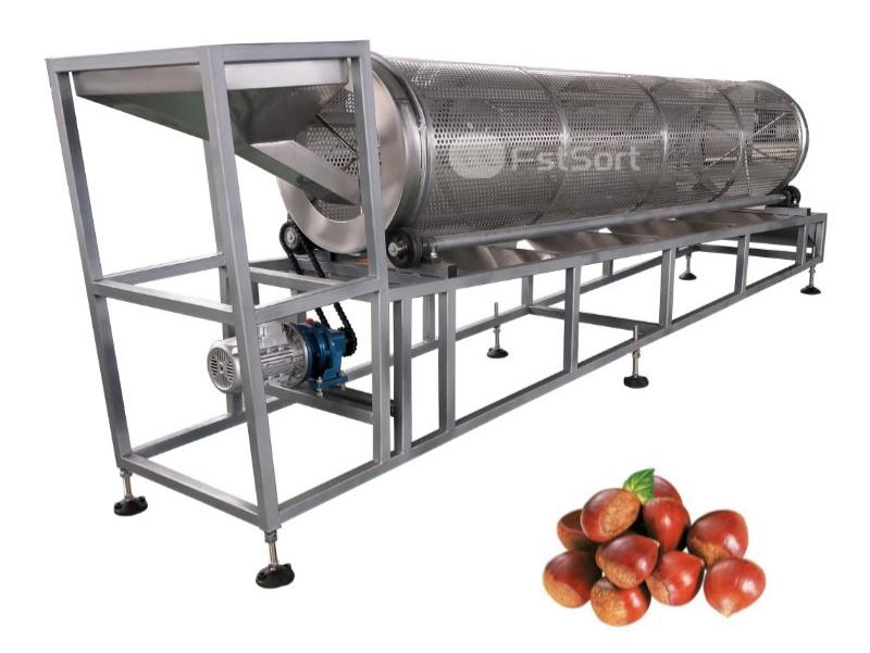 Drum Screen Grader | Automatic size sorting by diameter | Customers who need graded chestnuts by size |