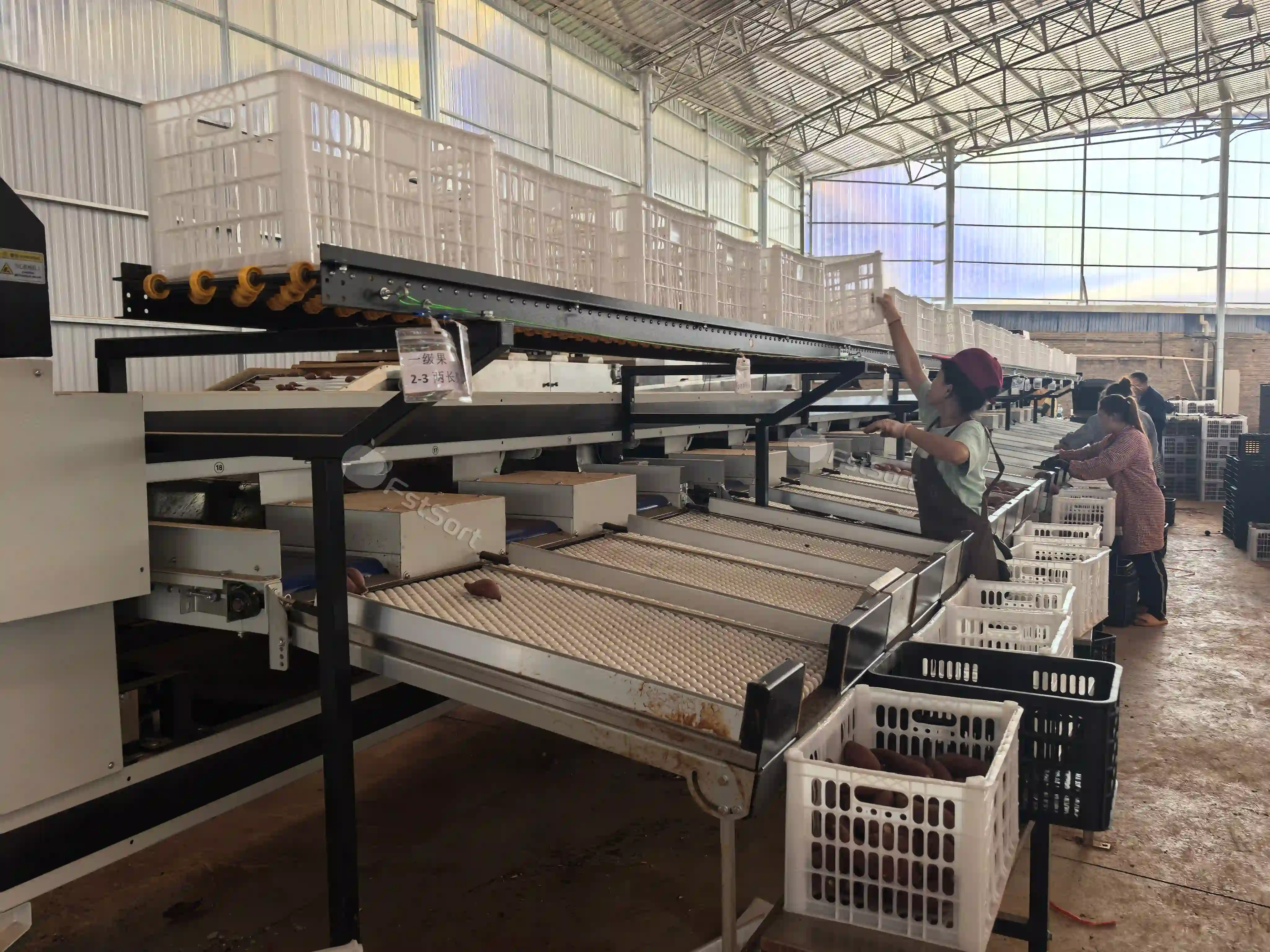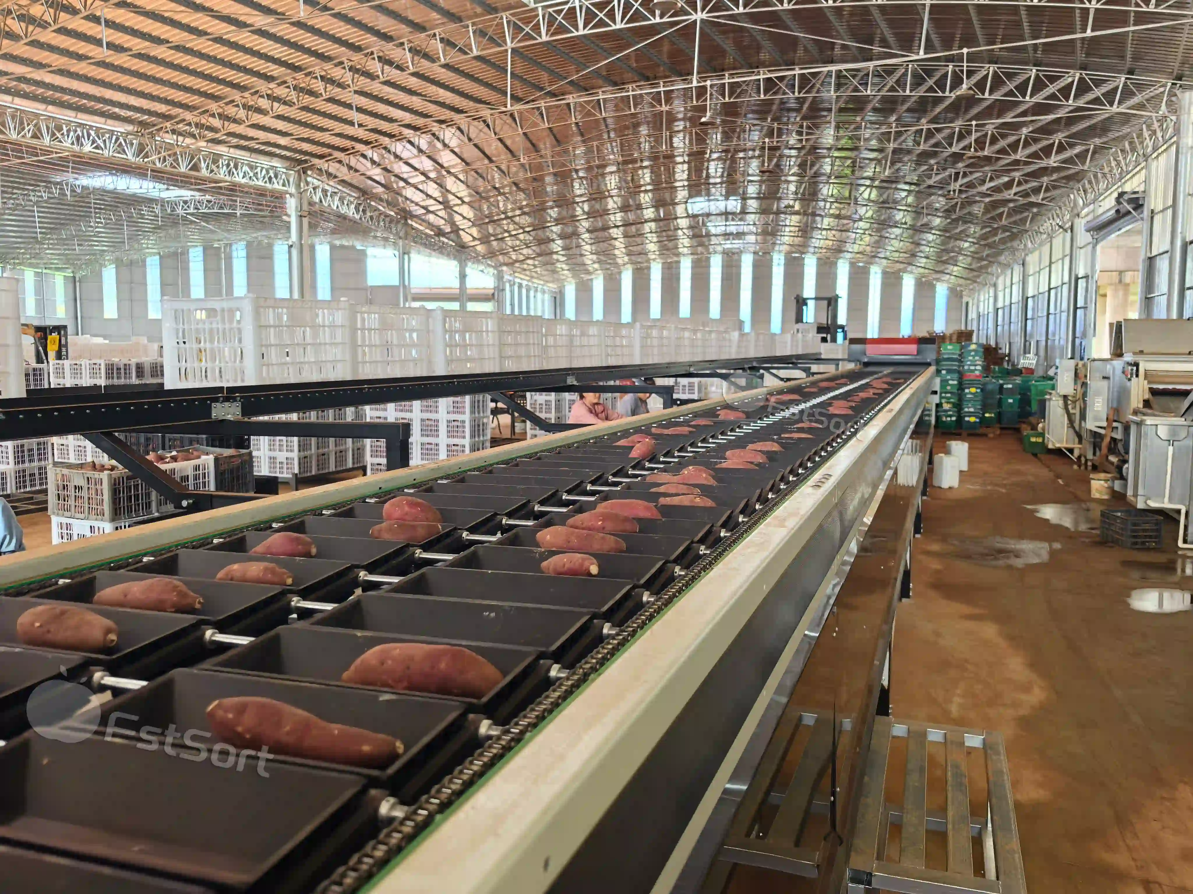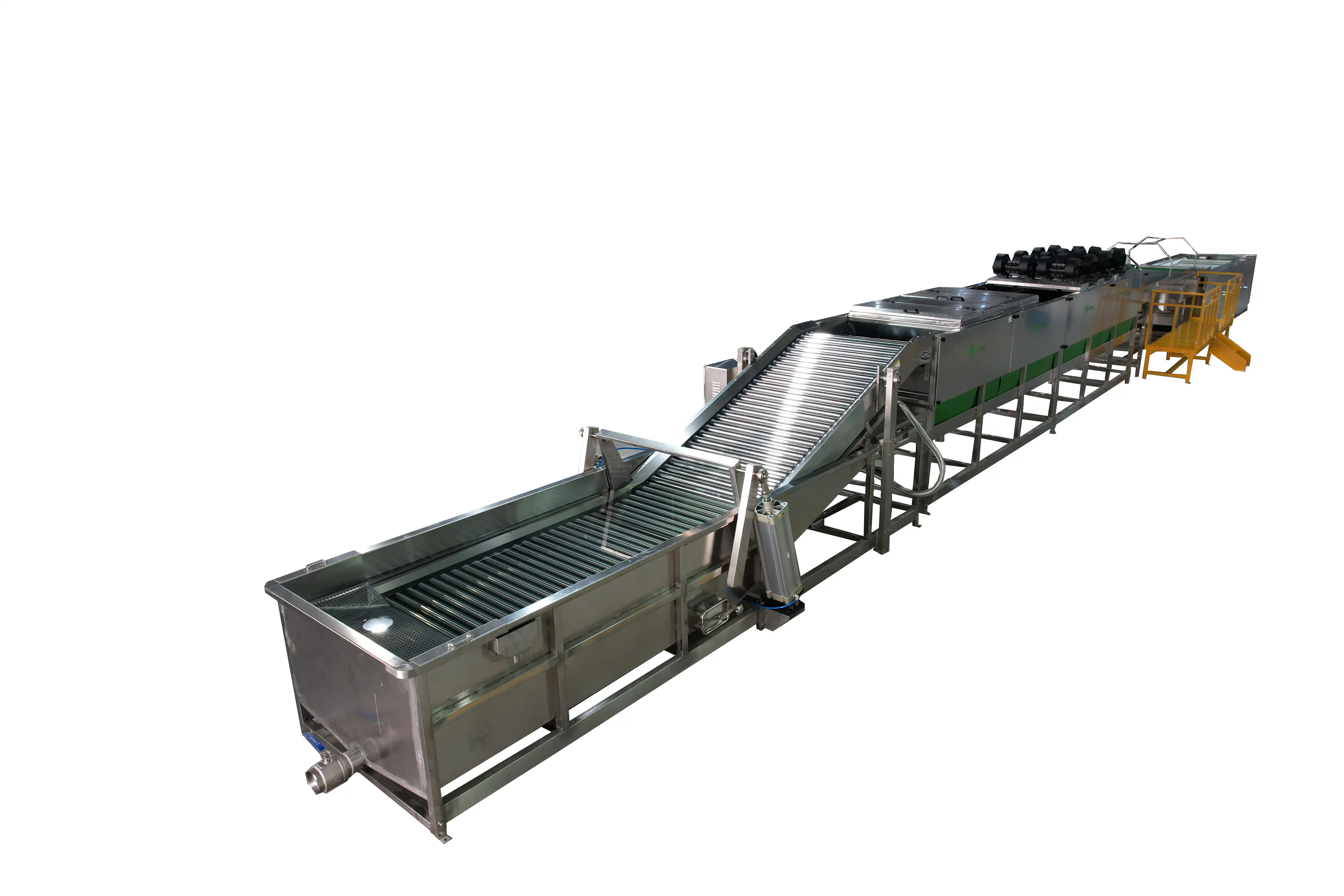La línea completa Fstsort de lavado, secado y clasificación de boniato está diseñada para el procesamiento comercial de alta capacidad. Está compuesta por: