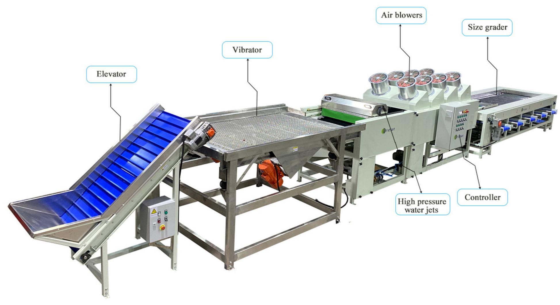 Washing-Drying-Grading Line | Deep cleaning for fresh or dry dates | water tank, brushes, spray, air dryers |